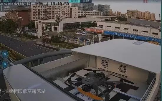 在新區(qū)有這樣一座特殊的“機(jī)場”——它坐落在園興西街的路燈桿上,外形像一個(gè)“四方盒子”?!昂凶印贝蜷_,停放在里面的無人機(jī)即可啟動(dòng)騰空,按設(shè)定航線執(zhí)行巡檢任務(wù)。