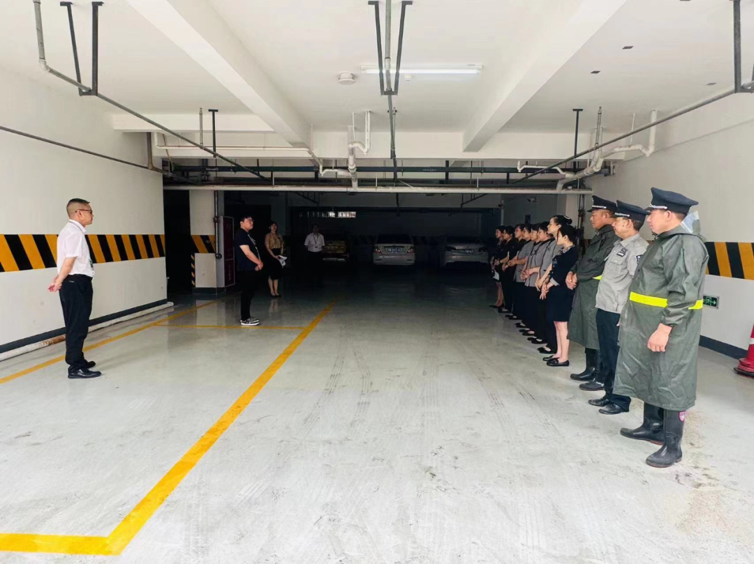 本次演練主要模擬強(qiáng)降雨導(dǎo)致酒店地下室排水溝泄洪困難,雨水倒灌至地下停車場(chǎng)的險(xiǎn)情。隨著一聲令下,按照應(yīng)急預(yù)案流程,險(xiǎn)情逐級(jí)上報(bào),各應(yīng)急小組有序開展防汛工作,在最短時(shí)間內(nèi)控制住險(xiǎn)情。